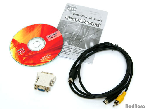 GeCube X1300XT 256MB GDDR3 PlatinumÀÇ ±¸¼º¹°·Î´Â »ç¿ëÀÚ ¸Å´º¾ó°ú µå¶óÀ̹ö CD, S-Video¿Í ÄÄÆ÷ÁöÆ® ºñµð¿À Ãâ·Â ´ÜÀÚ°¡ ÇÔ²² ´Þ·ÁÀÖ´Â ºñµð¿À Ãâ·Â ÄÉÀ̺í, ±×¸®°í DVI to D-SUB º¯È¯ Á¨´õ 1°³°¡ µé¾îÀÖ´Ù.