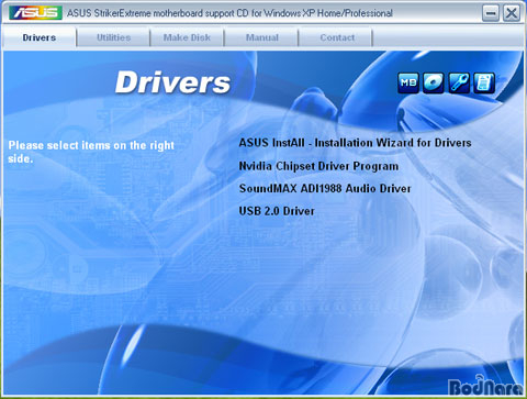ASUS Extreme °°Àº °æ¿ì´Â DVD¸¦ ÅëÇØ µå¶óÀ̹ö¸¦ ºñ·ÔÇÏ¿© ´Ù¾çÇÑ ÇÁ·Î±×·¥, ¸Å´º¾óÀ» Á¦°øÇϰí ÀÖ´Ù. ÀÚµ¿ ½ÇÇàÀ¸·Î Áö¿øÇÏ´Â ¸ÞÀκ¸µåÀÇ µå¶óÀ̹ö¿Í ÇÁ·Î±×·¥µéÀ» ÇѹøÀÇ Å¬¸¯À¸·Î ½ÇÇàÇÒ ¼ö ÀÖµµ·Ï ÇÏ´Â Æí¸®ÇÔÀ» Á¦°øÇÑ´Ù.