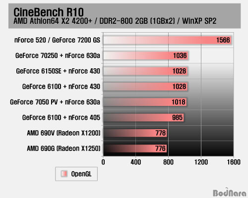 AMD 690G/VÀÇ °æ¿ì Shader Model 2.0±îÁö¸¸ Áö¿øÇÏ´Â Radeon X700 Äھ ±â¹ÝÀ¸·Î ¸¸µç ±×·¡ÇÈ Äھ »ç¿ëÇϰí ÀÖ¾î 3DMark06ÀÇ SM3.0 ¹× HDR Å×½ºÆ®¸¦ Åë°úÇÏÁö ¸øÇßÁö¸¸ Àüü Á¡¼ö´Â ÁöÆ÷½º °è¿­µé°ú Å« Â÷À̰¡ ¾ø¾ú´Ù. ¿ÀÈ÷·Á SM2.0 Å×½ºÆ®¿¡¼­´Â ÁöÆ÷½º °è¿­º¸´Ù ³ôÀº 190Á¡´ëÀÇ Á¡¼ö¸¦ ±â·ÏÇϱ⵵ Çß´Ù. Shader Model 3.0À» Áö¿øÇÏÁö ¸øÇÏÁö¸¸ 2.0 ÀÌÇÏÀÇ °ÔÀÓ¿¡¼­ ¿£ºñµð¾Æ °è¿­º¸´Ù ³ôÀº °á°ú¸¦ ³¾ ¼ö ÀÖ´Ù´Â ¶æÀÌ´Ù.