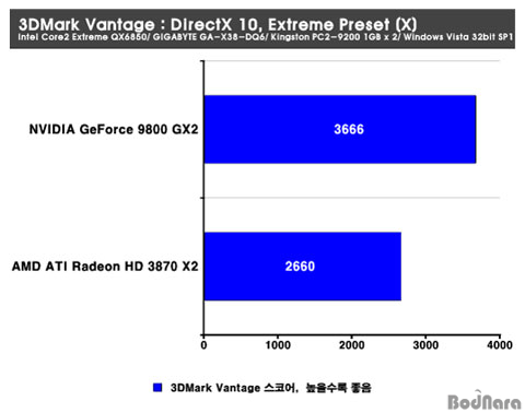 ³ªÅ¸³Â´Ù. Extreme Preset¿¡¼´Â HD 3870 X2°¡ X2660, 9800 GX2°¡ X3666À» ±â·ÏÇÏ¿©