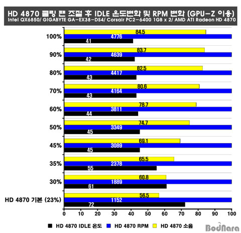 [HD 4870Àº RPMÀÌ 35%¸¦ ½ÃÀÛÀ¸·Î ¼ÒÀ½ÀÌ Áõ°¡, 30-35% Á¤µµ°¡ ÀûÁ¤]