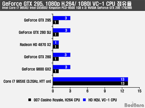 GeForce GTX 295 - H.264/ VC-1 CPU Á¡À¯À² ¹× Àç»ý½Ã ¼ÒºñÀü·Âºñ±³
