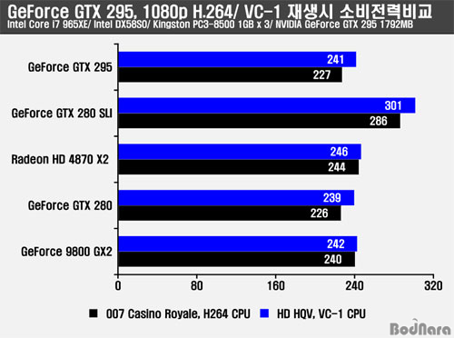 HD ¿µ»ó Àç»ý½Ã ¼ÒºñÀü·ÂÀº GeForce GTX 295°¡ ¾Õ¼±´Ù. GTX 280Àº ´ÜÀÏ