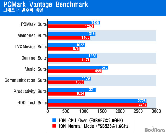 PCMark Vantage º¥Ä¡¸¶Å© °á°úµµ ¿À¹öŬ·°°ú °ü°è¾ø´Â HDD Á¡¼ö¸¸ ±×´ë·ÎÀÌ¸ç ³ª¸ÓÁö Ç׸ñÀÇ Á¡¼ö´Â ¸ðµÎ Çâ»óµÇ¾ú´Ù.