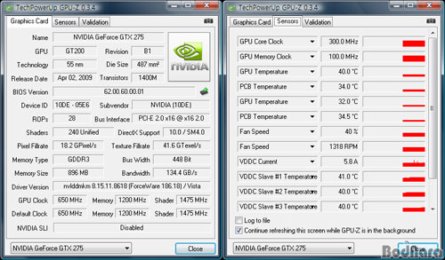 [GTX 275 OC, 3D: 650/ 1475/ 2400MHz, 2D : 300/ 100MHz]