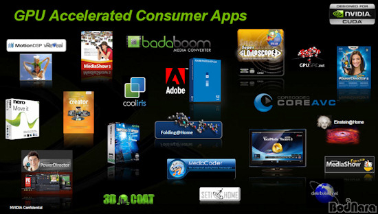 ¸ÖƼ GPU ±¸¼ºÀ» Áö¿øÇÏ´Â SLI ±â¼úÀ» ÅëÇØ ¸ÞÀκ¸µå Ĩ¼Â ½ÃÀå¿¡¼±îÁö À̵æÀ» ºÃ´ø ¿£ºñµð¾Æ´Â ÀÌÈÄ ¹°¸® ¿¬»ê ±â¼úÀ» °¡Áø AgeiaÀÇ PhysX ±â¼úÀ» GPU ¾ÈÀ¸·Î ²ø¾îµé¿´°í, °¡Àü ¾÷üµéÀÌ HD(High Definition) ´ÙÀ½À¸·Î ¹Ð°í ÀÖ´Â 3D µð½ºÇ÷¹ÀÌ ±â¼ú¿¡µµ ÅõÀÚ¸¦ À̾°í ÀÖ´Ù. CUDA¸¦ Æ÷ÇÔÇÑ ÀÌµé ±â¼úÀº ¿£ºñµð¾Æ°¡ GPU ½ÃÀåÀ» ¼ö¼ºÇÏ´Â °Í »Ó¸¸ ¾Æ´Ï¶ó »õ·Î¿î ½ÃÀåÀ» °³Ã´Çϴµ¥ µµ¿òÀÌ µÈ´Ù.
