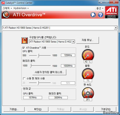 [Radeon HD 5970, 2D ¸ðµå : ÄÚ¾î 157MHz, ¸Þ¸ð¸® 1200 (300)MHz]