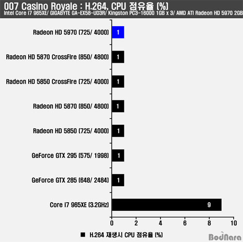 Radeon HD 5970, H.264 Àç»ý½Ã CPU Á¡À¯À² ¹× ¼ÒºñÀü·Â