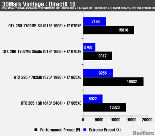ÄÚ¾î i7 965XE (3.20GHz) CPU¿Í Á¶ÇÕµÈ GeForce GTX 285/ GTX 295´Â CPU Ŭ·°Àº ¿¡À̸®¾ð¿þ¾î ¿À·Î¶ó ALXº¸´Ù ¾à°£ ³·Áö¸¸, ±×·¡ÇÈÄ«µåÀÇ ¼º´ÉÀÇ ¿µÇâÀ¸·Î ÄÚ¾î i7 975XE (3.33GHz)¿Í GeForce GTX 260/ GTX 260 SLI Á¶ÇÕº¸´Ù ³ôÀº ½ºÄھ ±â·ÏÇß´Ù.