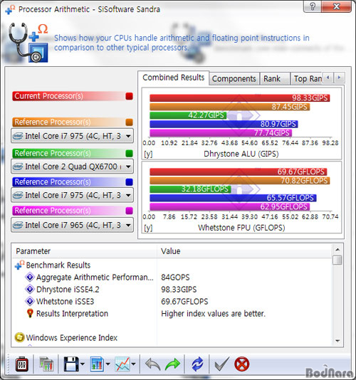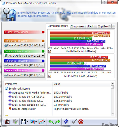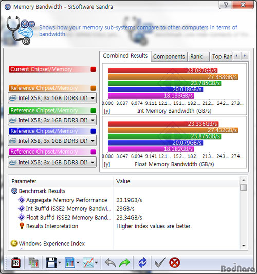 Sandra´Â ÃÖ±Ù 2010À¸·Î ¹öÀü¾÷ÀÌ ÀÌ·ç¾îÁ³´Âµ¥ ÃֽйöÀüÀ» ÀÌ¿ëÇØ ¿¡À̸®¾ð ¿À·Î¶ó ALX CPU ¿¬»ê°ú ¸ÖƼ¹Ìµð¾î, ±×¸®°í ¸Þ¸ð¸® ´ë¿ªÆøÀ» °£´ÜÈ÷ È®ÀÎÇß´Ù. ÄÚ¾î i7 975XE´Â ÀÎÅÚÀÇ °¡Àå ³ôÀº Ŭ·°À» °¡Áø CPU·Î ÄÚ¾î i7 965XEº¸´Ù Ŭ·° Çâ»ó¿¡ µû¸¥ ¿¬»ê ¼º´ÉÀÇ Çâ»óÀÌ ÀÌ·ç¾îÁö°í ÀÖ´Ù. ¸Þ¸ð¸® ´ë¿ªÆøÀº ºí·ëÇÊµå ¸ðµÎ Æ®¸®Çà ä³Î ä³Î·Î ±¸¼ºµÇ¾î À̷лóÀ¸·Î ³ôÀº ´ë¿ªÆøÀÌ ÃøÁ¤µÇ´Âµ¥ ÄÚ¾î i7 965XE ½Ã½ºÅÛº¸´Ù Á¶±Ý ³ôÀº ´ë¿ªÆøÀÌ ÃøÁ¤µÈ´Ù.