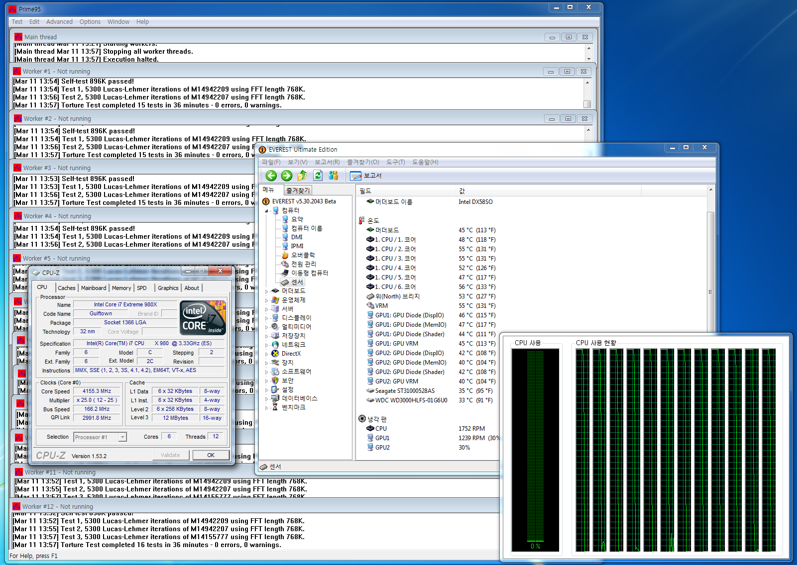 [ÄÚ¾î i7 980X ¿À¹öŬ·° ÈÄ ÇÁ¶óÀÓ95·Î ·Îµå, 36ºÐ ¿Ï·á]