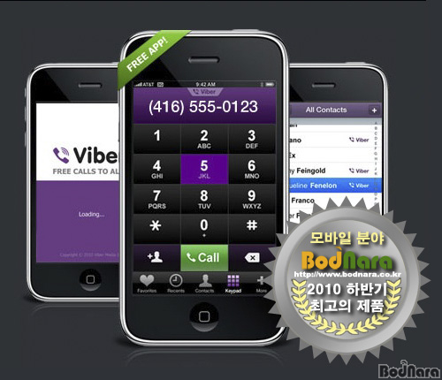 SkypeÀÇ µîÀåÀÌ ±¹Á¦ÀüÈ ½ÃÀåÀÇ È帧À» ¹Ù²ã °á±¹ ¿ä±ÝÀÌ ÀÎÇϵǰí VoIP¿¡ ´ëÇÑ ÀνÄÀ» Å©°Ô ¹Ù²ã ³õ¾Ò´Ù¸é Viber´Â ÀÌÅëÅë½ÅÀÇ À½¼º ÅëÈ ½ÃÀåÀÇ ÆÇµµ¸¦ ¹Ù²Ù°í Åë½Å»çµé·Î ÇÏ¿©±Ý À½¼ºÅëÈ ¼ºñ½º°¡ ¾Æ´Ñ µ¥ÀÌÅÍ ¼ºñ½º Áß½ÉÀÇ ¼öÀÍ ±¸Á¶¿¡ ÃÊÁ¡À» ¸ÂÃß°Ô ÇÏ´Â °è±â°¡ µÇ¾ú´Ù´Â Á¡¿¡¼ ¹«·áÅëÈ ¾ÛÀÎ ViberÀ» 2010³â ÇϹݱ⠺¸µå³ª¶ó º£½ºÆ® ¾î¿öµå·Î ¼±Á¤ÇÏ´Â ¹ÙÀÌ´Ù.