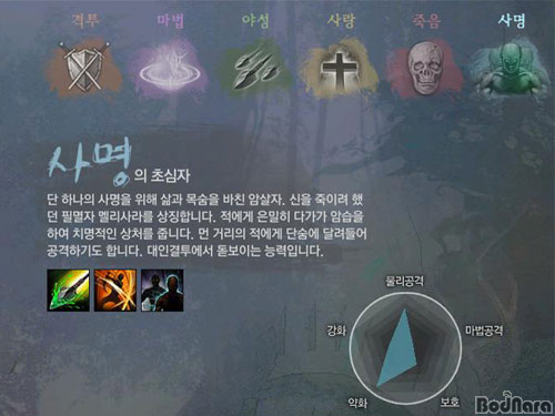 »ý»ê Ȱµ¿¿Ü¿¡ ¾ÆÅ°¿¡ÀÌÁö´Â ÀüÅõ¸¦ À§ÇÑ °ÝÅõ/ ¸¶¹ý/ ¾ß¼º/ »ç¶û/ Á×À½/ »ç¸íÀÇ 6°¡Áö ij¸¯ÅÍ Æ¯¼ºÀ» ¼±ÅÃÇÒ ¼ö ÀÖÀ¸¸ç, °¢ Ư¼ºº°·Î ¹°¸®°ø°Ý/ °È/ ¾àÈ/ º¸È£/ ¸¶¹ý°ø°Ý ´Ù¼¸°¡Áö Ư¼º¿¡ Â÷À̸¦ º¸ÀδÙ.