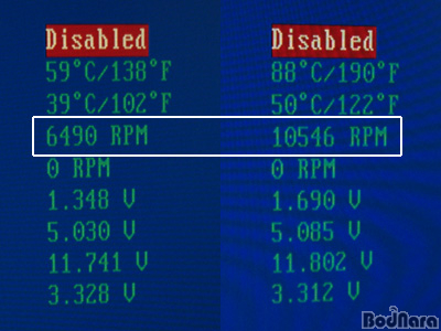 ¿À¹öŬ·°À» ½ÃµµÇÒ ¶§, ¿Âµµ¿¡ µû¶ó ÆÒ ½ºÇǵ尡 °¡º¯ÀûÀ¸·Î º¯ÇÏ´Â °ÍÀ» °üÂûÇÒ ¼ö ÀÖ¾ú´Âµ¥, ±âº»ÀûÀ¸·Î 3300RPM´ë¿´´ø °ÍÀÌ, 6000~1000RPM ¼öÁرîÁö º¯Çß´Ù. ÁÂÃøÀÇ »çÁøÀº ¹ÙÀÌ¿À½º¿¡¼­ Àü¾Ð Á¶Àý ÈÄ À©µµ¿ì¿¡ ÁøÀÔÇϸ鼭 ÇÁ·Î¼¼¼­ µå¶óÀ̹ö°¡ ÀÚµ¿À¸·Î Àü¾ÐÀ» ³·Ãß´Ù º¸´Ï ÀçºÎÆÃ ÈÄ À©µµ¿ìÁî¿¡¼­ ¼³Á¤ÇÑ »óÅ ±×´ë·Î 1.35v·Î ³²¾Æ ÀÖ´Â »óÅÂÀ̸ç, Ãʱ⿡ ¹ÙÀÌ¿À½º¿¡¼­ Àü¾Ð Á¶ÀýÀ» Çϸ鼭 À©µµ¿ì ºÎÆÃ ½ÃÁ¡±îÁö ¿Âµµ°¡ ¿Ã¶ó°¬±â ¶§¹®¿¡ ÆÒ ¼Óµµ°¡ ¿Ã¶ó°¡ ÀÖ´Â »óÅÂÀÌ´Ù. ¿ìÃøÀº Àü¾Ðµµ Å« ÆøÀ¸·Î ³ô¾ÆÁ® ÀÖ´Â »óÅÂÀÌ¸ç µðÁöÅÐ ¿Âµµ°è·Î ÃøÁ¤ÇÑ ¿Âµµ´Â 60µµ¿¡ ¸ø ¹ÌÄ¡¸¸, ¹ÙÀÌ¿À½ºÀÇ ÃøÁ¤°ªÀ¸·Î´Â À§Çè ¼öÀ§±îÁö ¿Ã¶ó°£ »óÅÂÀ̱⠶§¹®¿¡ ¾È°£ÈûÀ» ´ÙÇØ ÆÒÀÌ µ¹¾Æ°¡°í ÀÖ´Â »óȲÀÌ´Ù. 10000RPMÀ¸·Î µ¿ÀÛÇÒ ¶§ ¼ÒÀ½Àº »ó´çÇÑ ¼öÁØÀ̱⠶§¹®¿¡ °ø·© ȯ°æ¿¡¼­ÀÇ ¿À¹öŬ·°Àº ´Ù¼Ò ¹«¸®°¡ ÀÖ´Ù.