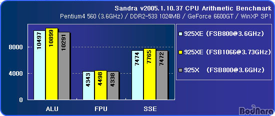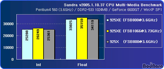Multi-Media Å×½ºÆ® °á°úµµ ¸¶Âù°¡Áö·Î FSB800ÀÏ ¶§ÀÇ 925XE¿Í 925XÀÇ ¼º´É Â÷ÀÌ´Â ¾øÀ¸¸ç FSB1066¿¡