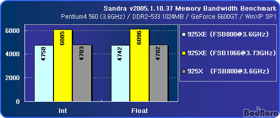 ´ë¿ªÆø Å×½ºÆ® °á°ú´Â FSB : ¸Þ¸ð¸® Ŭ·° ºñÀ²ÀÌ 3 : 4·Î ºñµ¿±âȵǴ FSB800¿¡¼ÀÇ 925XE¿Í 925XÀÇ ¸Þ¸ð¸® ´ë¿ªÆøÀÌ