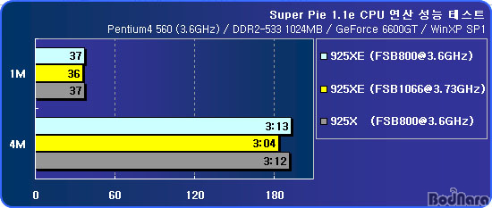 Pie 1.1e CPU ¿¬»ê ÇÁ·Î±×·¥À¸·Î Å×½ºÆ®ÇÑ °á°ú 1M Å×½ºÆ®¿¡¼´Â FSB800ÀÇ 925XE¿Í 925X°¡ °°Àº °á°ú¸¦ ³ªÅ¸³ÂÁö¸¸