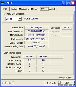 Dimension 5100Àº DDR2 SDRAMÀ» »ç¿ëÇϰí ÀÖÀ¸¸ç, µà¾ó ä³Î ±¸¼ºÀ¸·Î ¼³Ä¡µÇ¾ú´Ù. ¸Þ¸ð¸® ŸÀ̹ÖÀº 4.0 - 4 - 4 - 12·Î ±âº» SPD ŸÀ̹ÖÀÌ Àû¿ëµÈ´Ù. SPDÀÇ ³»¿ëÀ» ÅëÇØ Micron Technology»çÀÇ Á¦Ç°ÀÓÀ» È®ÀÎÇÒ ¼ö ÀÖ°í PC4300, DDR 533MHz·Î ÀÛµ¿µÈ´Ù.