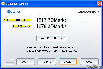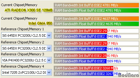 ÀÏ´Ü ³»ÀåÇüÀÎ Intel GMA 950À» Ȱ¼ºÈ­ÇÑ ÈÄ ÃøÁ¤ÇÑ °ªÀº º°µµ·Î Á¦°øµÇ´Â ATI RADEON X300 SE 128MB ¹öÀü¿¡ ºñÇÏ¿© ³·Àº ´ë¿ªÆøÀÌ ÃøÁ¤µÇ°í ÀÖ´Ù. ÀÌ´Â ´ç¿¬ÇÑ °á°ú·Î ³»ÀåÇü ±×·¡ÇÈ ÄÚ¾îÀÎ Intel GMA 950Àº 8MBÀÇ ¸Þ¸ð¸®°¡ ÇÒ´çµÇ°í »ç¿ë·®¿¡ µû¶ó ½Ã½ºÅÛ ¸Þ¸ð¸®¸¦ µ¿ÀûÀ¸·Î ÇÒ´çÇϱ⠶§¹®¿¡ ½Ã½ºÅÛ ¸Þ¸ð¸®°¡ »ç¿ëµÇ´Â ¸¸Å­ ´ë¿ªÆøÀº Ç϶ôÇÒ ¼ö¹Û¿¡ ¾ø´Ù.