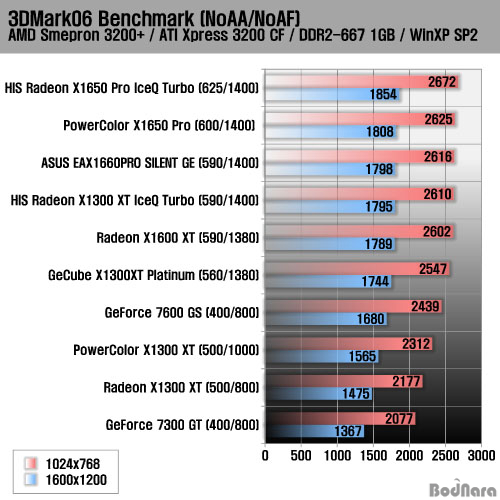 »ùÇ÷Πµé¾î¿Â Á¦Ç°µéÀÌ ´ëºÎºÐ ·¹ÆÛ·±½º Ŭ·°À» ÁöŰÁö ¾Ê¾Æ Radeon X1300 XTÀÇ °æ¿ì ·¹ÆÛ·±½º Ŭ·°À¸·Î ¸ÂÃç µû·Î Å×½ºÆ®ÇÑ °á°ú¸¦ Ãß°¡½ÃÄ×À¸¸ç, Radeon X1650 Pro´Â PowerColor Á¦Ç°ÀÌ ·¹ÆÛ·±½º Ŭ·°À» Áö۰í ÀÖÀ¸´Ï À̸¦ Âü°íÇÏ¸é µÈ´Ù. ºñ±³ Á¦Ç°À¸·Î´Â Radeon X1600 XT¿Í ATI°¡ Ÿ°ÙÀ¸·Î ÀâÀº GeForce 7600 GS, GeForce 7300 GT¸¦ ÅõÀÔÇÏ¿´´Ù.