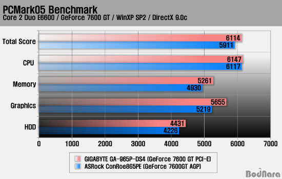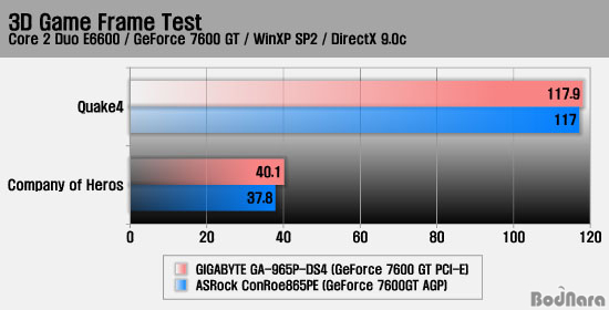 PCI Express ¹æ½ÄÀÇ GeForce 7600 GT¸¦ »ç¿ëÇÑ ºñ±³ ½Ã½ºÅÛÀ¸·Î´Â P965 Ĩ¼ÂÀ» »ç¿ëÇÑ GIGABYTE»çÀÇ GA-965P-DS4¸¦ ½è´Ù. (GA-965P-DS3¸¦ ¼±Á¤ÇÑ º°´Ù¸¥ ÀÌÀ¯´Â ¾ø°í ¸ÞÀκ¸µå Äð·¯°¡ Ä¿¼­ ¹Ú½º¿¡ ³Ö±â ±ÍÂú¾Æ ²¨³»³õÀº P965 º¸µå °¡¿îµ¥ ¾Æ¹«°Å³ª ¼Õ¿¡ ÀâÈ÷´Â °É·Î »ç¿ëÇß´Ù)