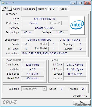 ÀÎÅÚ ¿ª½Ã EIST¶ó´Â ±â¼úÀ» °¡Áö°í ¹è¼ö¸¦ ³·Ãç ¼Òºñ Àü·ÂÀ» ÁÙÀÌ°Ô µÈ´Ù. CPU ¹è¼ö°¡ 6¹è¼ö·Î ³·¾ÆÁö¸é¼­ µ¿ÀÛ Å¬·°ÀÌ 1.6GHz¿¡¼­ 1.2GHz·Î ³»·Á°¬À¸³ª Pentium Dual-Core E2140ÀÇ ±âº» ¹è¼ö°¡ ³·¾Æ¼­ Å« Ŭ·° Â÷ÀÌ´Â º¸ÀÌÁö ¾Ê´Â´Ù. CPU Àü¾Ðµµ ±âº» Àü¾Ðº¸´Ù ³·°Ô À¯µ¿ÀûÀ¸·Î º¯Çϰí ÀÖ´Ù.