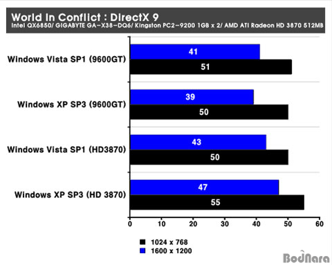 Áö¿øÇϰí ÀÖ´Â °ÔÀÓ ÁßÀÇ ÇϳªÀÎ World In Conflict (ÀÌÇÏ, Wic)ÀÇ DirectX 9 ȯ°æ¿¡¼ ¿î¿µÃ¼Á¦ º° ¼º´ÉÀ» È®ÀÎÇØº¸¾Ò´Ù. Å×½ºÆ® °á°ú HD 3870ÀÇ °æ¿ì´Â À©µµ¿ì XP ¼ºñ½ºÆÑ3