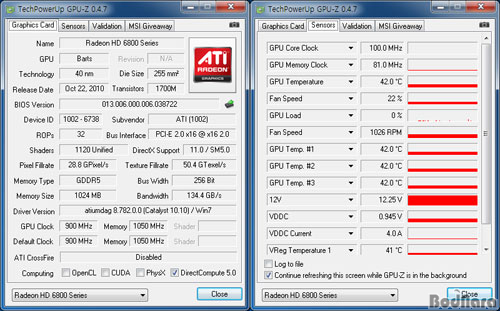 ¶óµ¥¿Â HD 6870°ú HD 6850 1GB´Â ¶óµ¥¿Â HD 5800 ½Ã¸®Áî°¡ ÄÚ¾î 175/ ¸Þ¸ð¸® 1200 (300)MHz·Î Ŭ·°À» ³·Ãß´Â °Í°ú ´Þ¸® GPU-Z 0.4.6 ÃֽйöÀüÀ¸·Î È®ÀÎÇÑ °á°ú ÄÚ¾î 100/ ¸Þ¸ð¸® 324 (81)MHz·Î µ¿ÀÛÇÑ´Ù. Å×½ºÆ®µÈ īŻ¸®½ºÆ® 10.10 º£Å¸ µå¶óÀ̹öÀÇ ÆÄ¿öÇ÷¹ÀÌ ¹ö±×·Î ¶óµ¥¿Â HD 6850Àº ÄÚ¾î¿Í ¸Þ¸ð¸® Ŭ·°ÀÌ HD 6870º¸´Ù ³ô°Ô ¼³Á¤µÇ°í ÀÖ¾î ¾ÆÀ̵é½Ã ¼ÒºñÀü·ÂÀÌ ´õ ³ô°Ô Àû¿ëµÈ´Ù. Á¤½Ä µå¶óÀ̹ö¿¡¼´Â ÀÌ ¹®Á¦°¡ ÇØ°áµÉ °ÍÀ¸·Î º¸¿©Áø´Ù.