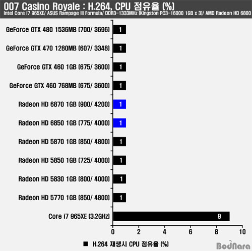 ÁöÆ÷½º GTX400 ½Ã¸®Áî´Â HD ¿µ»ó Àç»ý½Ã »óÀ§ Á¦Ç°µé°ú °°ÀÌ ÄÚ¾î 405/ ½¦ÀÌ´õ 810/ ¸Þ¸ð¸® 1296 (324)MHz·Î µ¿ÀÛµÇ°í ¶óµ¥¿Â HD 5800/ 5770Àº ÄÚ¾î 400/ ¸Þ¸ð¸® 3600 (900)MHz°¡ Àû¿ëµÇ¾î µ¿ÀÛµÇ°í ¶óµ¥¿Â HD 6870/ 6850Àº ÄÚ¾î 300/ ¸Þ¸ð¸® 1134 (283.5)MHz, ÄÚ¾î 300/ ¸Þ¸ð¸® 1080 (270)MHz·Î ¾à°£ ´Ù¸£°Ô ³ªÅ¸³µÀ¸³ª HD 6850ÀÇ °æ¿ì ÆÄ¿öÇ÷¹ÀÌ ¹ö±× ¹®Á¦·Î º¸¿©Áø´Ù.