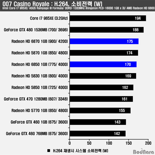HD ¿µ»ó Àç»ý½ÃÀÇ ¼ÒºñÀü·ÂÀº Àüü ½Ã½ºÅÛÀÇ ¼ÒºñÀü·ÂÀ¸·Î ¶óµ¥¿Â HD 6800 ½Ã¸®Áî°¡ Àü¹ÝÀûÀ¸·Î ³ô°Ô ³ªÅ¸³´Ù. ÁöÆ÷½º GTX 460 ½Ã¸®Áî´Â °æÀï Á¦Ç°µéº¸´Ù Àü¹ÝÀûÀ¸·Î ³·Àº ¼ÒºñÀü·ÂÀ» Á¦°øÇÏ´Â °ÍÀ¸·Î ³ªÅ¸³µ´Ù.