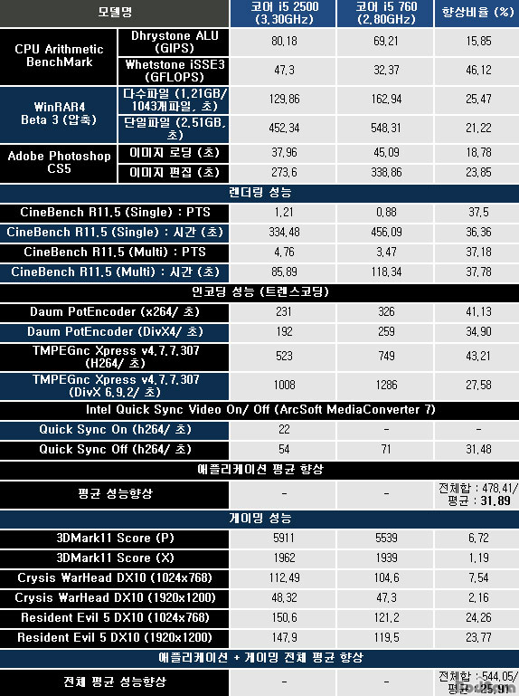 ÄÚ¾î i5 760 ´ëºñ ÄÚ¾î i5 2500 ¼º´É Çâ»ó