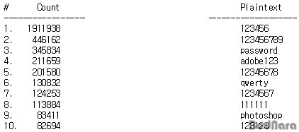 ÀÌ·± ¿ÍÁß¿¡ À¯ÃâµÈ »ç¿ëÀÚ Á¤º¸Áß °¡Àå ¸¹ÀÌ »ç¿ëµÈ ÆÐ½º¿öµå 100°³°¡ ÀÎÅÍ³Ý º¸¾È ±×·ìÀÎ SCGÀÇ ºÐ¼®À» ÅëÇØ °ø°³µÇ¾úÀ¸¸ç, À¯ÃâµÈ ÆÐ½º¿öµå Áß °¡Àå ¸¹ÀÌ »ç¿ëµÈ ÆÐ½º¿öµå ž 10Àº ´ÙÀ½°ú °°´Ù.