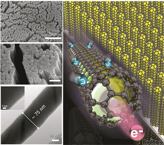 ±è ±³¼ö ¿¬±¸ÆÀÀº ³ª³ë Àü±Ø Àç·áÇÕ¼º±â¼úÀ» Ȱ¿ë, µÎ²² 75nm(³ª³ë¹ÌÅÍ) ±æÀÌ 15§(¸¶ÀÌÅ©·Î¹ÌÅÍ)ÀÇ È² ³ª³ë¿ÍÀ̾ ¼öÁ÷À¸·Î Á¤·ÄÇØ Àü±Ø Àç·á¸¦ Á¦ÀÛÇßÀ¸¸ç, Á¦ÀÛµÈ È² ³ª³ë¿ÍÀ̾î Á¤·Ä ±¸Á¶´Â 1Â÷¿ø ±¸Á¶Ã¼·Î ºü¸¥ ÀüÀÚÀÇ À̵¿ÀÌ °¡´ÉÇØ Àü±ØÀÇ Àüµµµµ¸¦ ±Ø´ëȽÃÄ×´Ù.