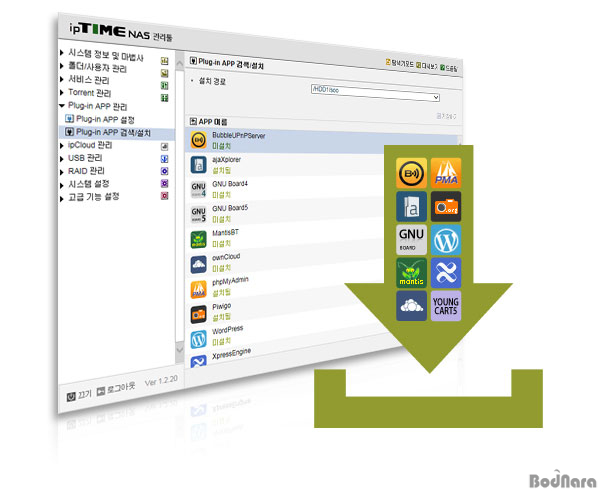 ipTIME¿¡¼ ÇöÀç Á¦°øÇÏ´Â NAS¿ë AppÀº GNU board °Ô½ÃÆÇ, ajaXplorer ÆÄÀÏ Å½»ö±â, MantisBT °³¹ßÀÚ¿ë °Ô½ÃÆÇ, ownCloud °³Àοë Ŭ¶ó¿ìµå ¼¹ö, phpMyAdmin php ±â¹ÝÀÇ DB °ü¸®Åø, Piwigo »çÁø ¾Ù¹ü °ü¸®Äð, WordPress ºí·Î±×Çü °Ô½ÃÆÇÅø, EXpressEngine Á¦·Îº¸µå °Ô½ÃÆÇ, YoungCart5 ¼îÇθô °ü¸®Åø µîÀÌ ÀÖ´Ù. »ç¿ëÀÚ´Â Á¦°øµÇ´Â AppÀ» ¼³Ä¡ÇÏ¿© NAS¸¦ ÀÏ¹Ý ¹ü¿ë ¼¹öó·³ »ç¿ëÇÒ ¼ö ÀÖ´Ù.