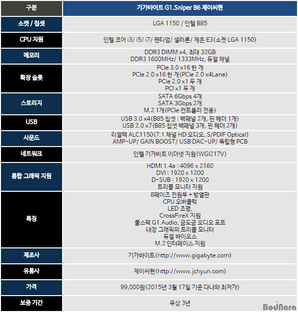 Áö±Ý±îÁö »ìÆìº» °Í¸¸À¸·Î ¾îÁö°£ÇÑ Z97 ¸ÞÀκ¸µå´Â °¡º±°Ô ÂòÂǸÔÀ» µíÇÑ Æ÷½º¸¦ dz±â´Â ±â°¡¹ÙÀÌÆ® G1.Sniper B6 Á¦À̾¾ÇöÀº ºñ·Ï º¸±ÞÇü Ĩ¼ÂÀÎ B85°¡ »ç¿ëµÇ¾úÁö¸¸, °ÔÀÌ¹Ö ¶óÀξ÷¿¡ ¾î¿ï¸®°Ô ¾Ç¼¼¼¸®µµ ¾îÁö°£ÇÑ Z97 ¸ÞÀκ¸µå ºÎ·´ÀÝÀº ±¸¼ºÀ» º¸ÀδÙ.