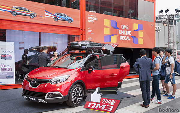 [»çÁø 5] ¡®À¯´ÏÅ© QM3¡¯ ÆË¾÷½ºÅä¾î¿¡ Àü½ÃµÈ QM3 Â÷·®À» Áö³ª°¡´ø °í°´µéÀÌ °ü½É ÀÖ°Ô »ìÇǰí ÀÖ´Ù. 18.5km/LÀÇ ¾ÐµµÀûÀÎ ¿¬ºñ, À¯·¯ÇÇ¾È µðÀÚÀΰú ÁÖÇ༺´ÉÀ¸·Î ÁÖ¸ñ ¹ÞÀº QM3´Â ¿ÃÇØ º¸´Ù Àû±ØÀûÀÎ ¸¶ÄÉÆÃ È°µ¿À» ÆîÄ¡¸ç °í°´ÀÇ °ü½ÉÀ» ²ø°í ÀÖ´Ù.