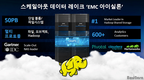 EMC°¡ Á¦½ÃÇÏ´Â µ¥ÀÌÅÍ ·¹ÀÌÅ©´Â Á¾·ù¿¡ °ü°è¾øÀÌ ´ë±Ô¸ðÀÇ µ¥ÀÌÅ͸¦ ¼ö¿ëÇϰí ÀúÀå, ºÐ¼®, ó¸®ÇÒ ¼ö ÀÖ´Â ÇϳªÀÇ ÅëÇÕµÈ µ¥ÀÌÅÍ ÀúÀå¼Ò¸¦ ÀǹÌÇÑ´Ù. EMC´Â ½ºÄÉÀϾƿô ¾ÆÅ°ÅØÃ³ ±â¹ÝÀÇ NAS ½ºÅ丮Áö ‘EMC ¾ÆÀ̽ǷВÀ» ÇʵηΠµ¥ÀÌÅÍ ·¹ÀÌÅ©ÀÇ ½±°í ºü¸¥ ±¸ÃàÀ» Áö¿øÇؿԴÙ. ÃÖ±Ù µ¥ÀÌÅ͸¦ ºÐ¼®Çϰí À̸¦ ±â¾÷ ³» ÀÇ»ç °áÁ¤¿¡ ¹Ý¿µÇÏ´Â ºòµ¥ÀÌÅÍ¿¡ ´ëÇÑ ¿ä±¸°¡ ±× ¾î´À ¶§º¸´Ù ³ôÀº °¡¿îµ¥, ±â¾÷µéÀº ´Ù¾çÇÑ ¼Ò½º¿¡¼ »ý¼ºµÈ µ¥ÀÌÅ͸¦ È¿À²ÀûÀ¸·Î ºÐ¼® Ȱ¿ëÇÒ ¼ö ÀÖ´Â ‘µ¥ÀÌÅÍ ·¹ÀÌÅ©’ ±¸Ãà¿¡ ¸¹Àº °ü½ÉÀ» ±â¿ïÀ̰í ÀÖ´Ù.