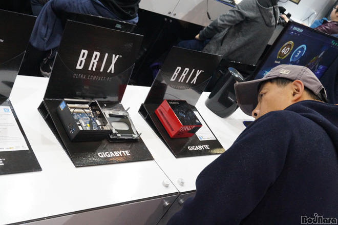 µ¥½ºÅ©Å¾°ú °ÔÀÌ¹Ö ³ëÆ®ºÏ üÇè Á¸ »çÀÌ¿£ ºê¸¯½º(BRIX)°¡ Àü½Ã¿ëÀ¸·Î Áø¿µÆ´Ù. ºê¸¯½º´Â ÀÎÅÚÀÌ ¼±º¸ÀÎ ¼Õ¹Ù´Ú PC¿¡¼ ¿µ°¨À» ¹Þ¾Æ µðÀÚÀÎµÈ ÃʼÒÇü ¹Ì´Ï PC´Ù. GB-BXi7H ¹× BXi7 ¹× BXi5 µî ÀÎÅÚ 5¼¼´ë ¹× 4¼¼´ë ÄÚ¾î ÇÁ·Î¼¼¼°¡ ÀåÂøµÈ °í¼º´É ¹Ì´Ï PC¸¦ Àü½ÃÇØ °ü½ÉÀ» ²ø±âµµ Çß´Ù.