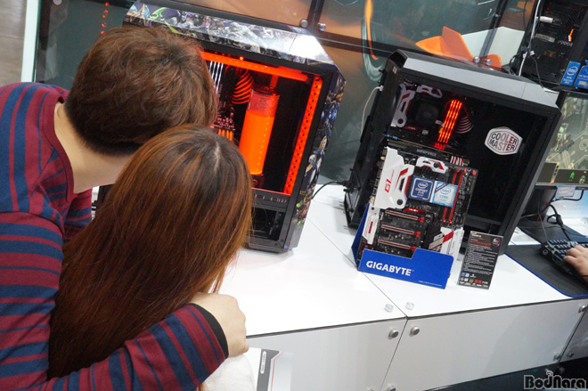 ´ëÇ¥ÀûÀÎ PC ÄÉÀ̽º ¹× ÆÄ¿ö¼ÇöóÀÌ PC ÄÄÆ÷³ÍÆ® ¾÷üÀÎ Ä𷯸¶½ºÅÍ¿Í Äݶ󺸷¹À̼ÇÀ¸·Î Ưº° Á¦ÀÛµÈ Àü½Ã¿ë PC·Î ½Ã¼±À» »ç·Î ÀâÀº °ÍÀÌ´Ù. ÁÂÃø¿£ ¿À¹öŬ·° ¸ÞÀκ¸µå Áß ÇϳªÀÎ ±â°¡¹ÙÀÌÆ® Z170X-SOC Force, ¿ìÃø¿£ GA-Z170X-°ÔÀ̹ÖG1 ¸ÞÀκ¸µå°¡ ¼³Ä¡µÈ µ¥½ºÅ©Å¾ PC°¡ Áø¿µÆ´Ù.