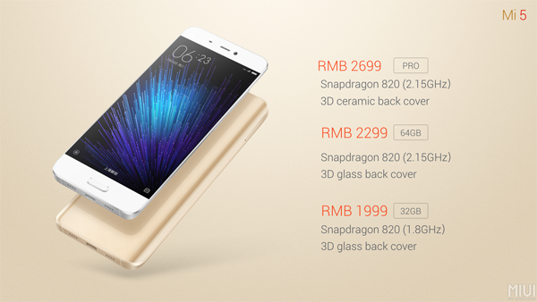»þ¿À¹Ì ¹Ì5 Ãâ½Ã °¡°ÝÀº ÇÁ·Î¼¼¼ µ¿ÀÛ Å¬·°ÀÌ ³·Àº ½º³Àµå·¡°ï 820 (1.8GHz) 32GB ¸ðµ¨ÀÌ 1,999À§¾È(ÇÑÈ ¾à 38¸¸¿ø), ½º³Àµå·¡°ï 820 (2.15GHz) 64GB ¸ðµ¨Àº 2,999À§¾È(ÇÑÈ ¾à 44¸¸¿ø), 128GB UFS 2.0 ½ºÅ丮Áö¸¦ Á¦°øÇÏ´Â ÇÁ·Î(PRO) ¸ðµ¨Àº 2,699À§¾È(ÇÑÈ ¾à 51¸¸¿ø)ÀÌ´Ù.