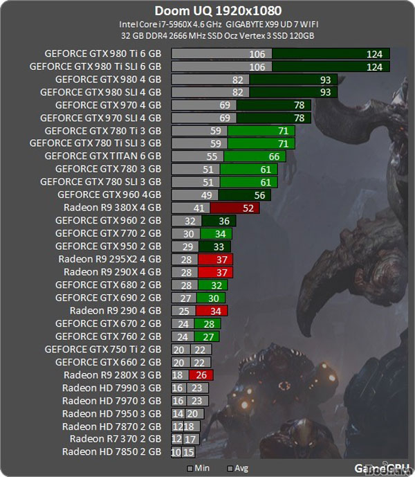 Intel Core i7 5960x 4.6 GHz, ±â°¡¹ÙÀÌÆ® X99 ¸ÞÀκ¸µå, 32GB DDR4 2666MHz, OCz SSD½ºÅ丮Áö·Î ÀÌ·ç¾îÁø ½Ã½ºÅÛ°ú °¢Á¾ GPU¸¦ ÀÌ¿ëÇÑ À̹ø µÒ º¥Ä¡¸¶Å©¿¡¼´Â, ÇØ»óµµº°·Î ³ôÀ½ ¿É¼Ç°ú ¿ïÆ®¶ó ¿É¼ÇÀ¸·Î 3°³ÀÇ ÇØ»óµµ¿¡ ´ëÇØ ´Ù¾çÇÑ GPU¸¦ ¼º´ÉÀ» üũÇѰÍÀ¸·Î º¸ÀδÙ.