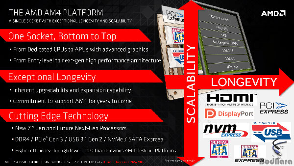 ¾Æ¿ï·¯ AMDÃø¿¡¼ °ø½Ä ¹ßÇ¥ÇÑ ÀÚ·á¿¡ µû¸£¸é AM4¸¦ ÅëÇØ À̹ø¿¡ ¹ßÇ¥µÈ APU¿Í µ¿½Ã¿¡ ÃßÈÄ Ãâ½ÃµÉ ZEN CPU¿Í ´ÜÀÏÈµÈ ¼ÒÄÏÀ» »ç¿ëÇÒ ¿¹Á¤À̶ó°í ¹àÇû´Ù.(FX½Ã¸®Áî¿Í APU½Ã¸®Áî µ¿ÀÏ ¸ÞÀκ¸µå »ç¿ë°¡´É) ±×¿Ü·Î ÃֽŠÇ÷§Æû ±â¼úµî·Î ÀÚ¸®Àâ°í ÀÖ´Â MVMe¿Í USB 3.1 µîÀÌ Å¾ÀçµÆ´Ù.