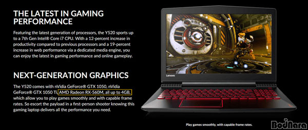 Á¤º¸ Ãâó´Â ·¹³ë¹ö Y520 ³ëÆ®ºÏ ¼Ò°³ ÆäÀÌÁö·Î, Á¤È®È÷´Â ÃÖ´ë 4GB VRAMÀ» Áö¿øÇÑ´Ù´Â ¼Ò½Ä°ú ÇÔ²² ¶óµ¥¿Â RX-560MÀÌ ¾ð±ÞµÇ¾ú´Âµ¥, ¿É¼ÇÀ¸·Î ÁöÆ÷½º GTX 1050°ú GTX 1050 Ti°¡ ÇÔ²² ¾ð±ÞµÈ Á¡À» °¨¾ÈÇϸé À̵é°ú ºñ½ÁÇÑ ¼º´ÉÀ» ³»ÁÙ °ÍÀ¸·Î ¿¹»óµÈ´Ù.