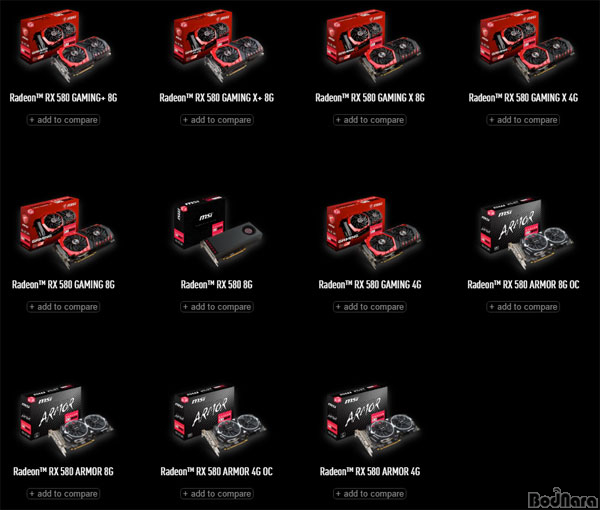 MSI´Â °¡Àå ¸¹Àº Á¾·ùÀÇ ¶óµ¥¿Â RX 500 ½Ã¸®Á ¼±º¸À̴µ¥, RX 580 ½Ã¸®Áî 11Á¾, RX 570 ½Ã¸®Áî 8Á¾À¸·Î ÃÑ 19°³ ¸ðµ¨ÀÌ ¼±º¸À̴µ¥, AMDÀÇ ÀüÅëÀûÀÎ ºí·Î¿öÆÒ ¹æ½ÄÀº ¶óµ¥¿Â RX 580 8GB ¸ðµ¨ 1Á¾ÀÌ Æ÷ÇԵǸç, ¶óµ¥¿Â RX 570¿¡´Â ºí·Î¿öÆÒ ¹æ½Ä ¸ðµ¨ÀÌ ¼±º¸ÀÌÁö ¾Ê´Â´Ù.