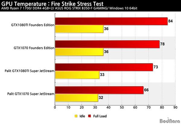 ÆÄ¿î´õ½º ¿¡µð¼Ç°úÀÇ Ä𸵠Â÷À̰¡ È®¿¬ÇÏ°Ô µé¾î³µ´Ù. Palit ÁöÆ÷½º GTX1080TI/ GTX1070 Super JetStreamÀÇ µÎ°³ÀÇ ÆÒÀº ÆÒÀÌ ÇϳªÀÎ ÆÄ¿î´õ½º ¿¡µð¼Çº¸´Ù 10µµ ÀÌ»óÀ̳ª ³·Àº °ÍÀ» È®ÀÎ ÇÒ ¼ö ÀÖ¾ú´Ù.