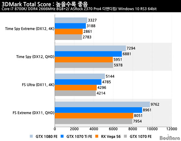 DirectX 12 ±â¹Ý Å×½ºÆ®ÀΠŸÀÓ ½ºÆÄÀÌ(Time Spy)ÀÇ ÃÑÁ¡À» º¸¸é ÁöÆ÷½º GTX 1070 TiÀÇ ¼º´ÉÀÌ,