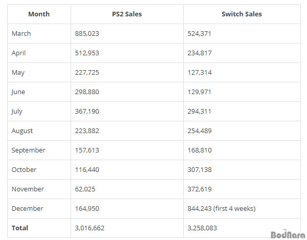 ÀÌÀü¿¡ 1À§¿´´ø ¼Ò´Ï PS2(PlayStation 2)¿Í ºñ±³Çϸé óÀ½ 5°³¿ù µ¿¾ÈÀº ´ÑÅÙµµ ½ºÀ§Ä¡°¡ ÆÇ¸Å·®ÀÌ ¹Ð·ÈÁö¸¸ ÀÌÈÄ Â÷Ãû Áõ°¡ÇÏ¿© ¿ªÀüÇÏ¿´°í, ƯÈ÷ 12¿ù¿¡´Â 10°³¿ù µ¿¾È ÃÑ ÆÇ¸Å·®(325¸¸¿© ´ë)¿¡¼ ¾à 25.7%¿¡ ´ÞÇÏ´Â 84¸¸¿© ´ë¸¦ ÆÇ¸ÅÇØ ¿ÏÀüÇÏ°Ô ¾ÕÁö¸£´Â °ÍÀÌ °¡´ÉÇÏ¿´´Ù.