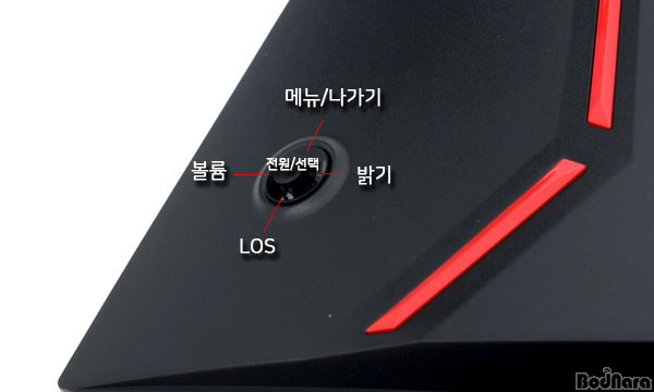 ¸ð´ÏÅÍ Àü¿ø ¹× OSD ¸Þ´º Á¶ÀÛÀº Èĸ鿡 À§Ä¡ÇÑ Á¶À̽ºÆ½À» ÅëÇØ ÇÒ ¼ö ÀÖ´Ù. Á¶À̽ºÆ½ ¹æÇâ¿¡ µû¶ó ¸Þ´º, ¹à±â, º¼·ý, °ÔÀÌ¹Ö ¸ð´ÏÅÍ¿¡