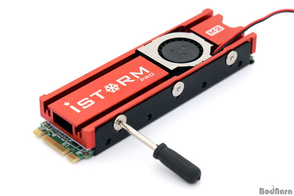 ¸¶Âù°¡Áö·Î µ¿ºÀµÈ ½á¸Ö ÆÐµå¿Í Á¶¸³ ³ª»ç¸¦ ÀÌ¿ëÇØ M.2 SSD¸¦ ¼³Ä¡ÇÏ°í ³ª»ç¸¦ °áÇÕÇØÁÖ¸é µÈ´Ù. ÁÂÃø »ó´Ü¿¡ ºÓÀº»ö LED°¡ µé¾î°¡ SSD°¡