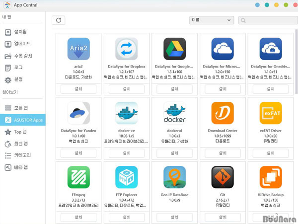 '¾Û ¼¾Æ®·²(App Central)'¿¡¼´Â AS1002T v2¿¡ ¾Û(ÀÀ¿ë ÇÁ·Î±×·¥)À» ¼³Ä¡ÇÒ ¼ö ÀÖ´Ù. ¾Æ¼ö½ºÅä¾î NAS´Â ¾ÛÀ» ±â¹ÝÀ¸·Î